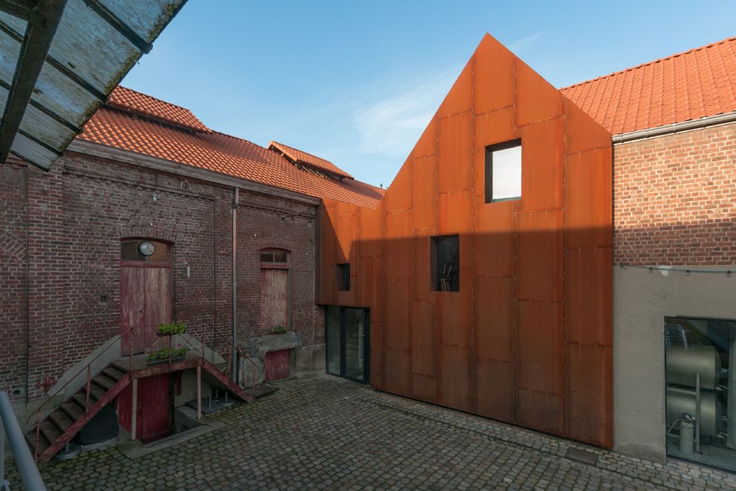 Le maintien du caractère actuel du site était crucial pour l’implantation du nouveau programme dans ce complexe historique. L’intervention la plus radicale a été l’adaptation de la forme de la toiture et du revêtement de façade de la liaison entre le garage d’origine et l’ancienne brasserie. Pour la stabilité, des tirants de façade et des poutres en acier supplémentaires ont été placés dans les caves. Des fermes et des poutres en bois ont été renforcées de la manière la plus subtile possible avec des éclisses et des haubans en acier.
