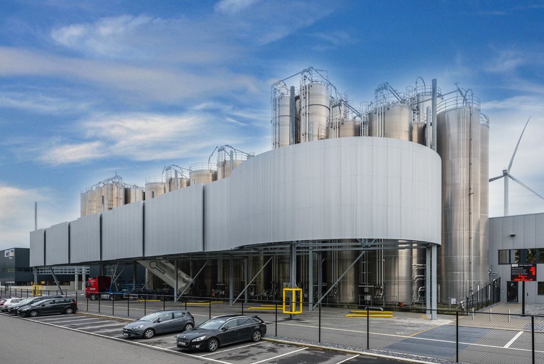 Le producteur de matières plastiques Sabic recherchait une solution pour le chargement et le déchargement plus sûrs des matériaux en vrac. La nouvelle installation doit prévenir le basculement de camions silos. L’ensemble est constitué d’une construction en acier galvanisé qui est capable de retenir un camion de vrac rempli qui bascule. Le revêtement est constitué de tôles ondulées en acier revêtues (Joris Ide 18.76.988 PVDF 9006 de part et d’autre). La toiture chaude est constituée d’un steeldeck classique (Joris Ide 106.250.750) avec isolation et étanchéité de toiture en pvc.