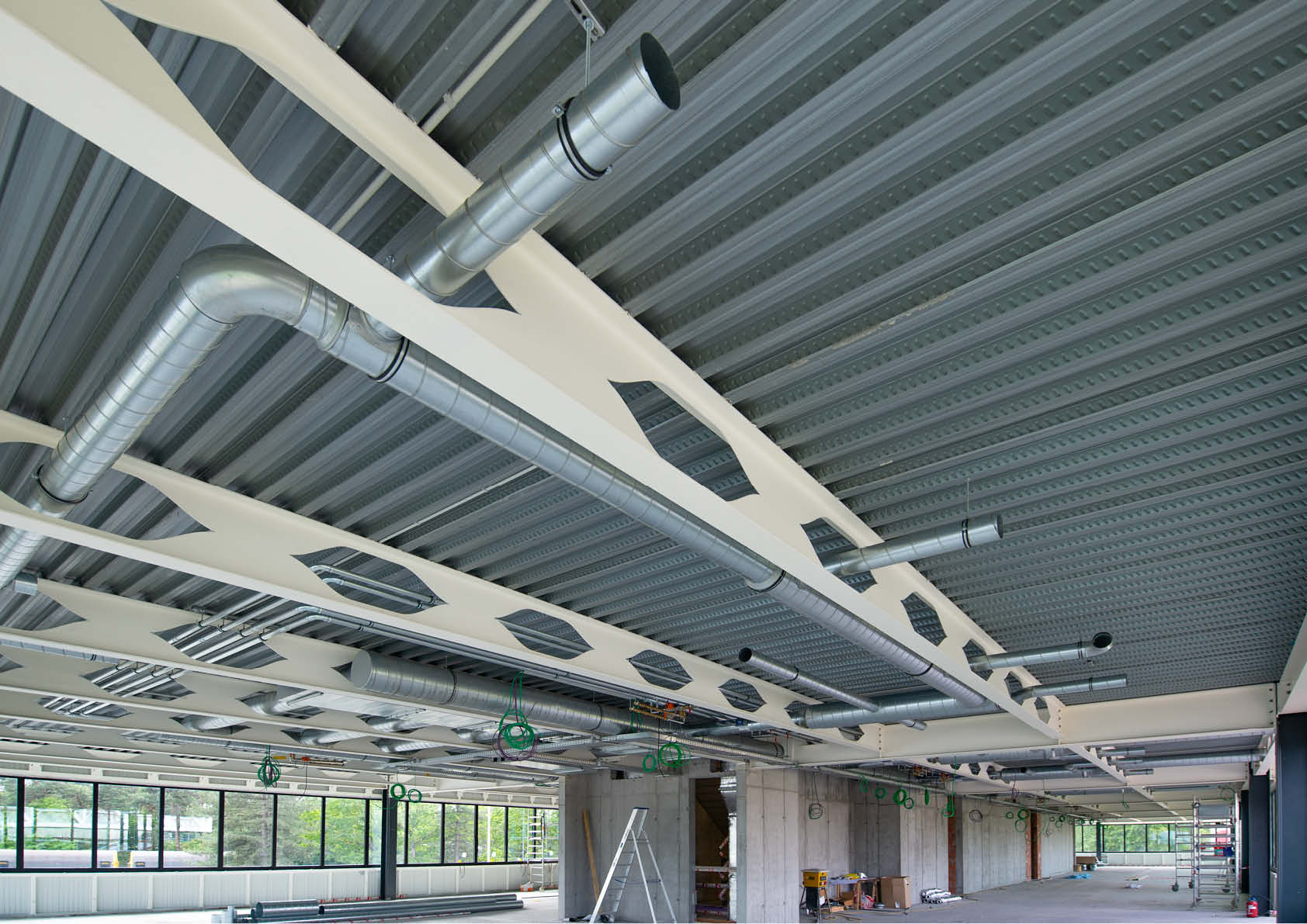 Het INDI-gebouw (INovatie & DIgitalisatie) in Gent huisvest 220 mensen van de digitaliseringsteams van ArcelorMittal. Het spreekt voor zich dat staal een hoofdrol speelt. Zo werd het eigen Steligence®-concept er voor het eerst volledig toegepast. De staalstructuur is geoptimaliseerd met behulp van Angelina®-beams en Cofraplus®-staalplaatbetonvloeren.